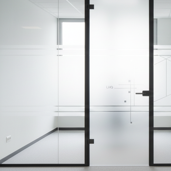 Unsere Milchglasfolien schützen Glasflächen in Büros und Gewerberäumen zuverlässig vor Einblicken. Professionell, elegant und lichtdurchlässig für ein modernes Arbeitsumfeld.